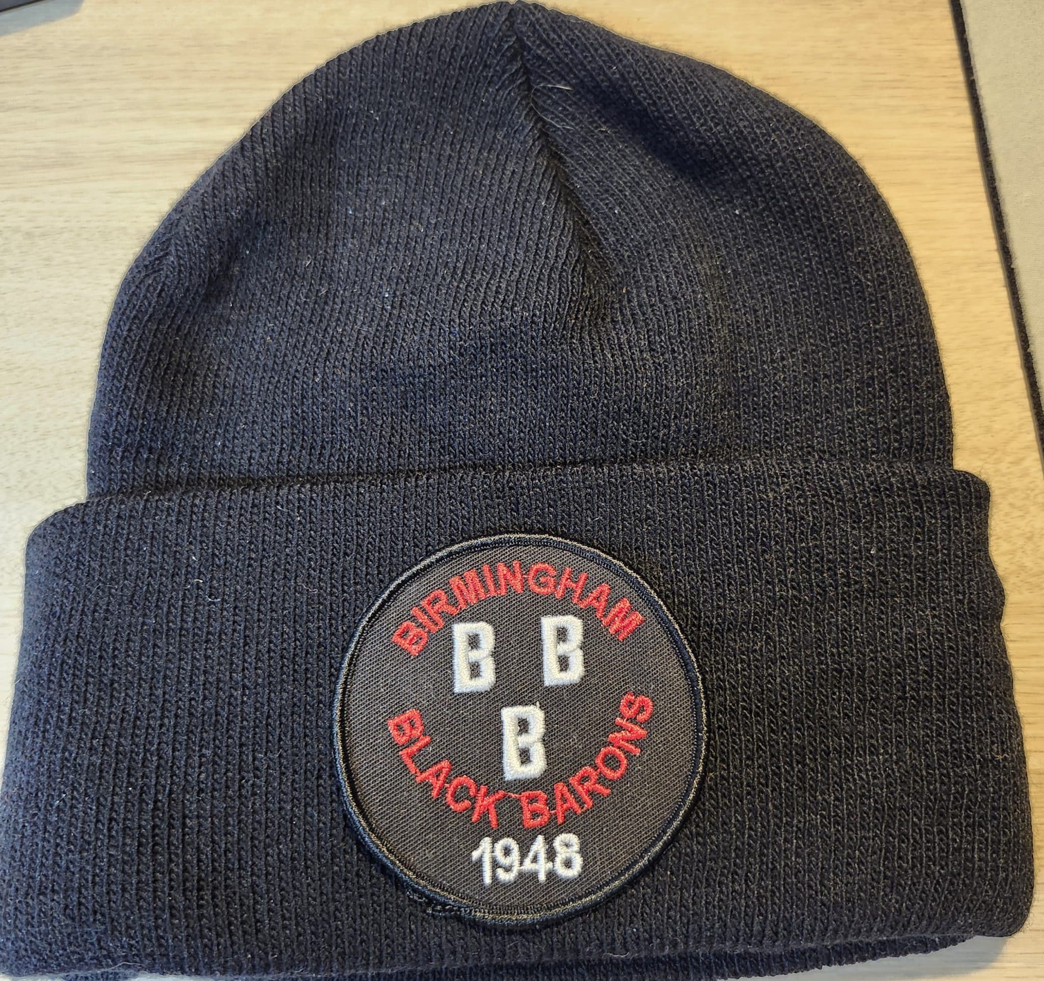 Black Tobaggan Knit caps with asst color 3 inch emblems on front.